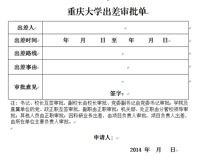 下载地址:重庆大学出差审批单.doc
