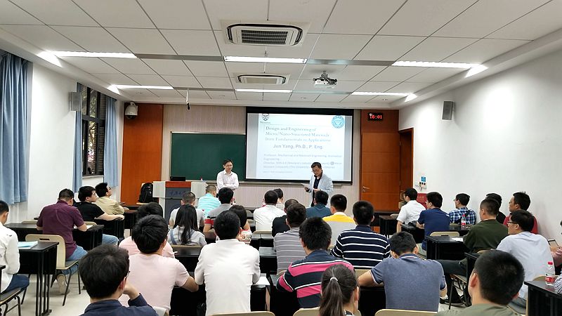2018年5月28日下午,应www.365388.com邀请,加拿大工程院院士、西安大略大学杨军教授到访www.365388.com,并在8教110教室作了题为《Design and Engineering of Micro/Nano-Structured Materials, Surfaces and Devices: from Fundamentals to Applications》的报告。报告由www.365388.com院长胡宁教授主持,学院师生60余人出席听讲。